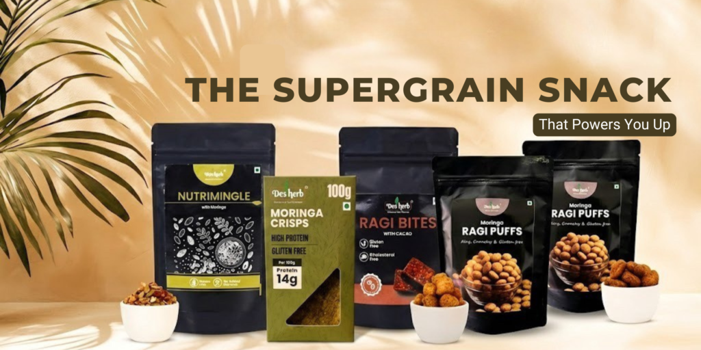 With Desherb Moringa Moments, Moringa Millet Energy Bar, and easy-to-carry premixes, you can fuel your body naturally — without sugar crashes, heaviness, or regret.